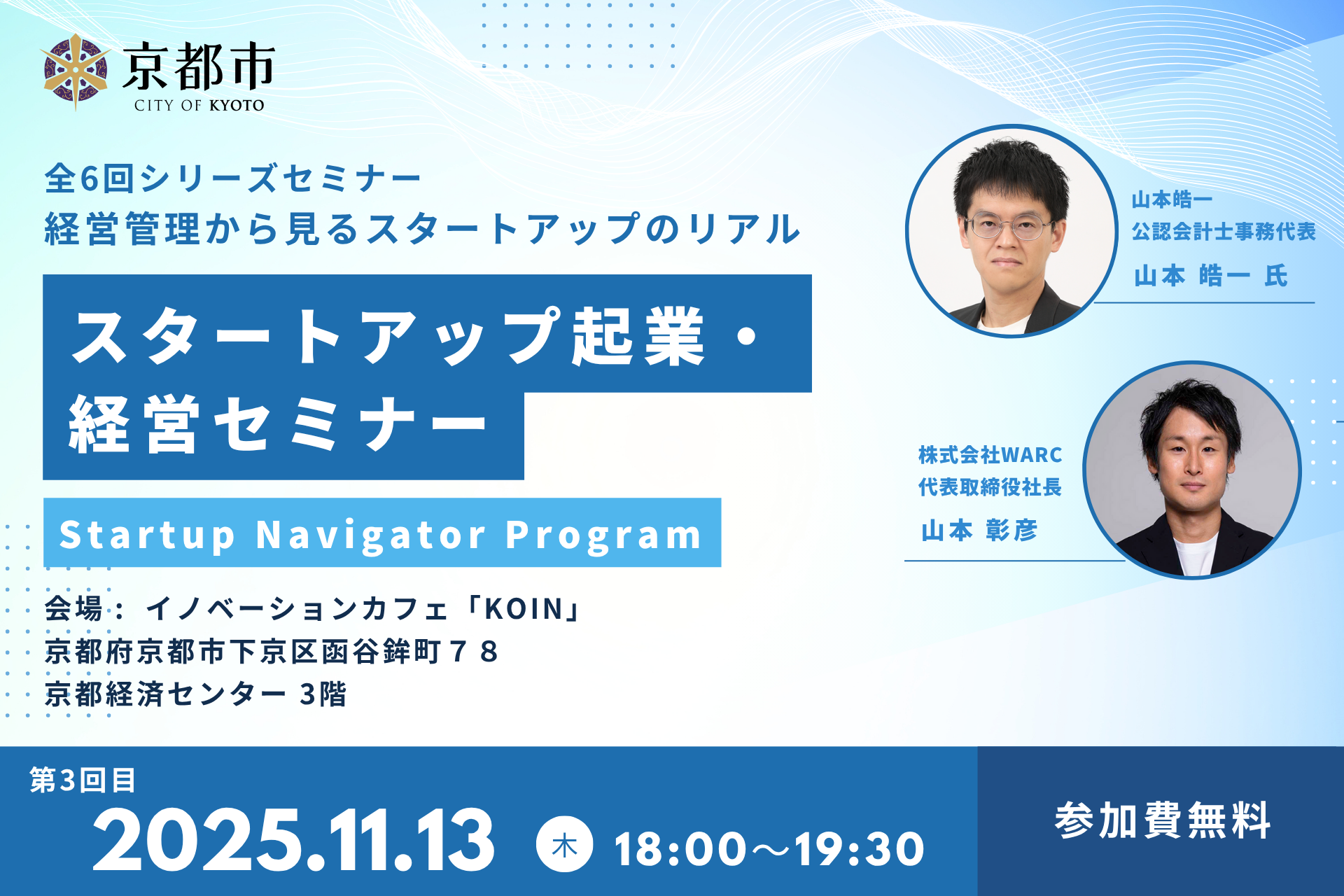 • 「スタートアップ起業・経営セミナー」 〜 第3回 経理・財務・経営企画 編 〜